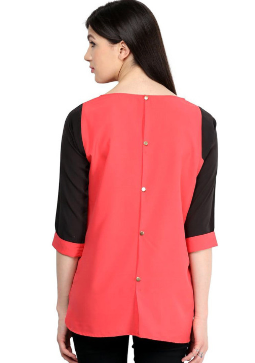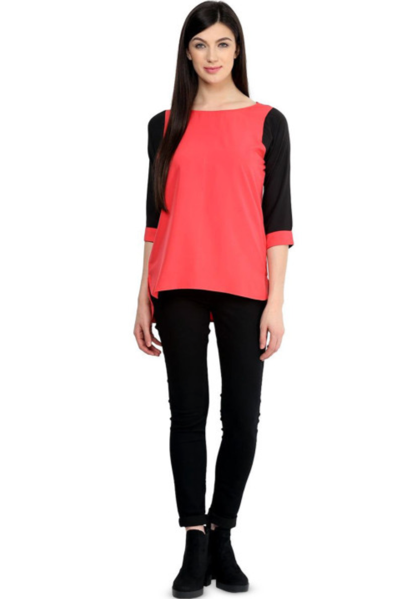Orange regular tank top, Solid, Round neck, three-quarter, regular sleeves sleeves, Woven