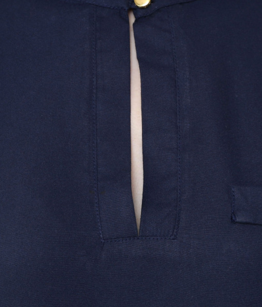 Navy blue regular top, Solid, Round neck, three-quarter, regular sleeves, Detail, Woven, Button closure
