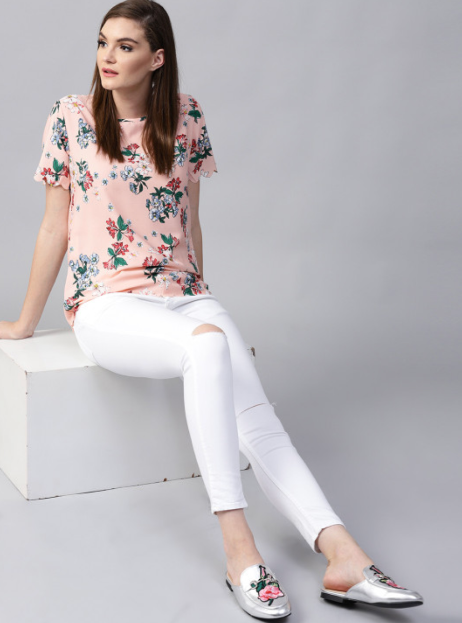 Women Peach-Coloured Floral Printed TopWomen Peach-Coloured Floral Printed Top